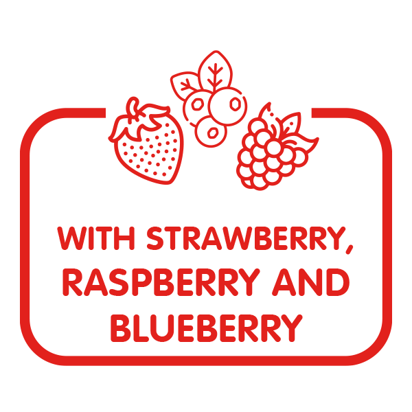 ** gelijkwaardig aan 1.1% gedehydrateerde aardbei, framboos of blauwe bes